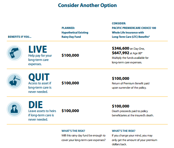 If you plan to self-insure, each dollar you’ve saved will pay for just one dollar of long-term care services. But by re-positioning a portion of your current assets into a better vehicle, you may leverage the dollars you’ve saved for greater long-term care protection.